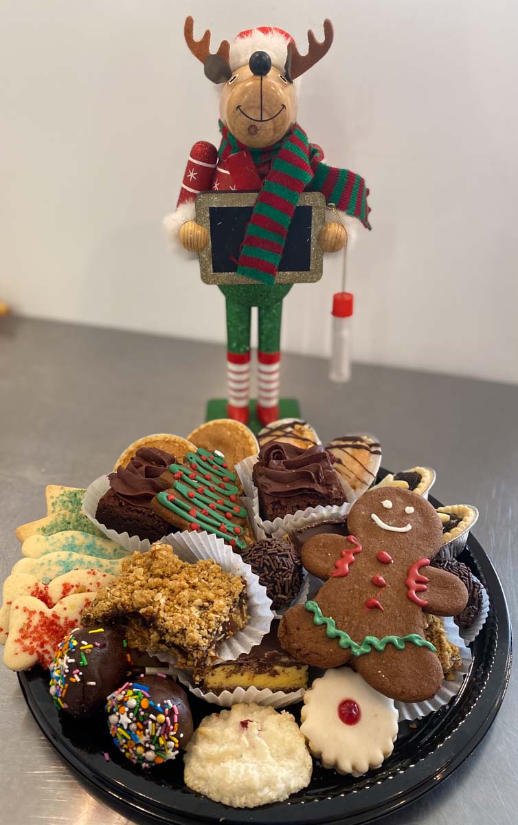 A delightful assortment of cookies, buttery tarts, colorful cake pops, and decadent dessert squares, accompanied by rich brownies and classic Nanaimo bars. Perfect for any gathering, this tray offers a variety of sweet treats to satisfy every craving.